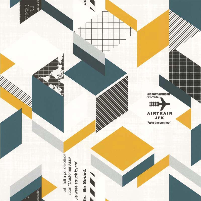 Papel de parede Les Aventures 3 51164402 Geométrico Tom Branco Verde Amarelo Prata e Preto
