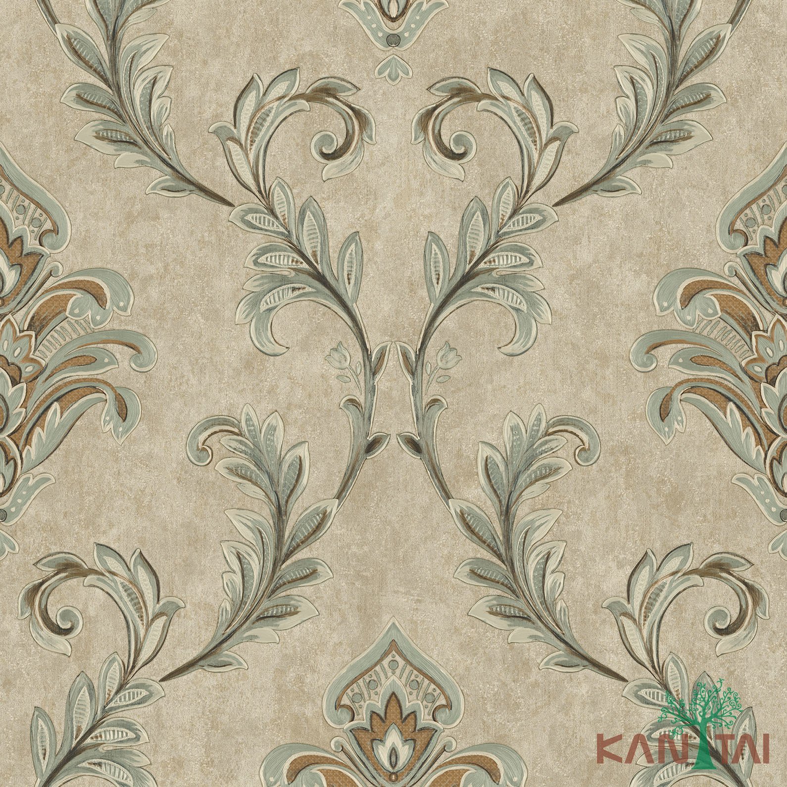 Papel De Parede Poet Chart 3 PT970902R Arabesco Verde Bege