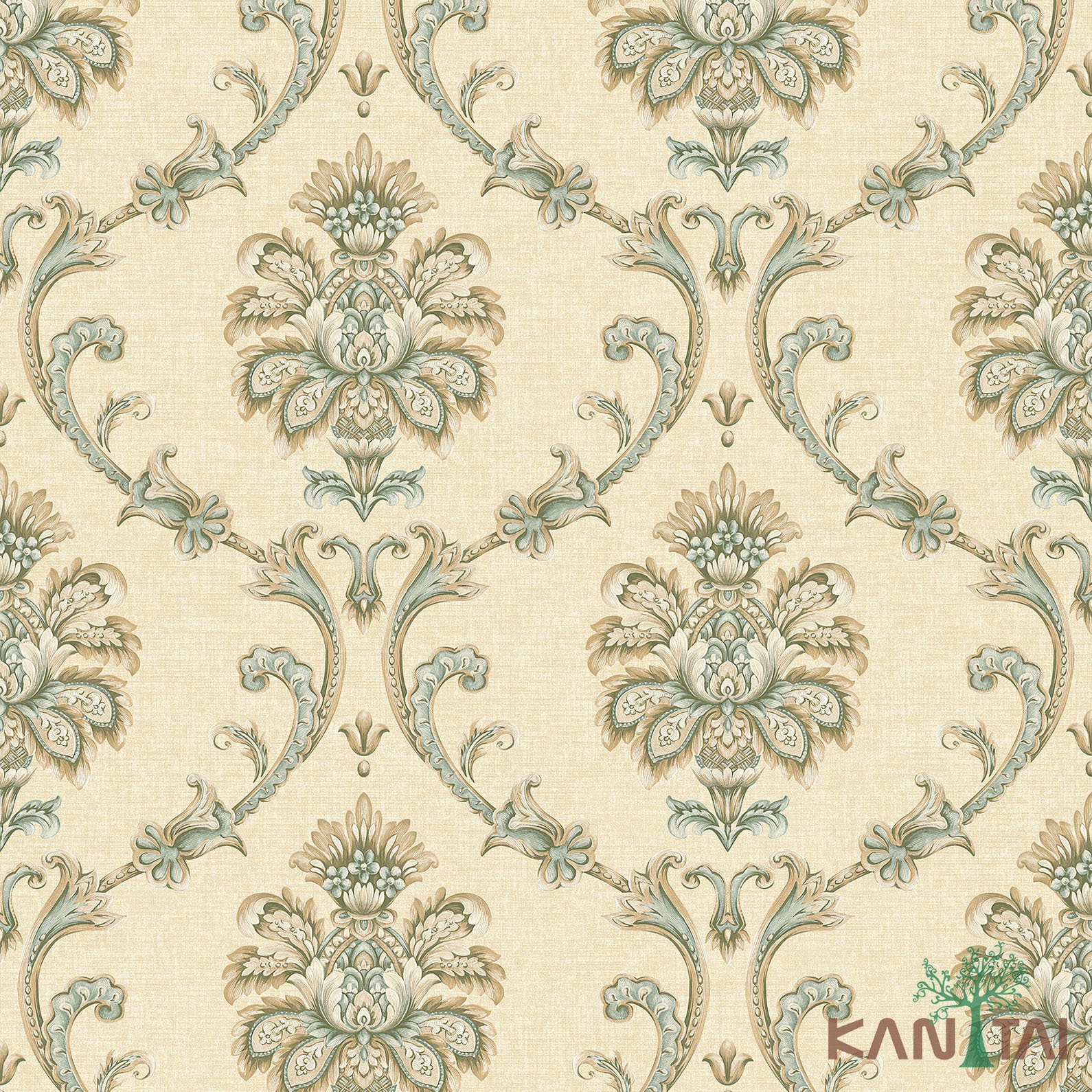 Papel De Parede Poet Chart 3 PT971101R Arabesco Verde Bege