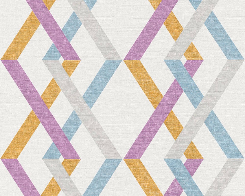 Papel de Parede Vinílico Linen Style 367591 Geométrico Azul, Cinza, Violeta e Laranja “Consultar disponibilidade do Produto 19 9 8750-5835”